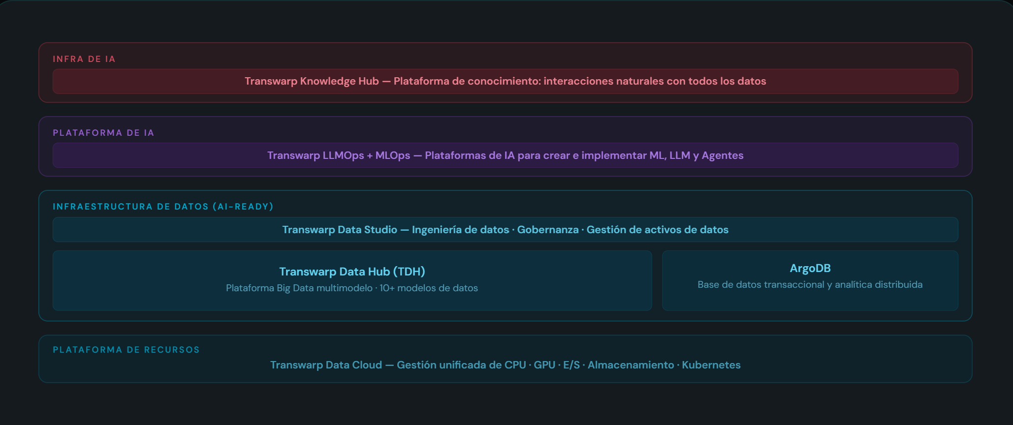 Infraestructura de datos multimodelo que unifica Data Lake, Lakehouse, Data Mart y streaming en tiempo real en una sola plataforma. Ningún producto del mercado es igual.