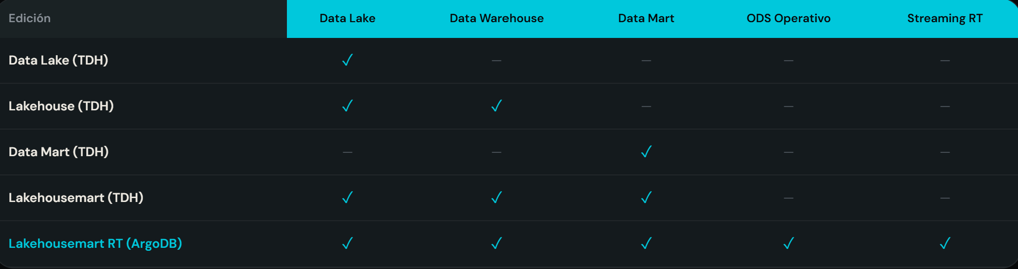 Sin equivalente en el mercado para las ediciones Lakehousemart y Lakehousemart en Tiempo Real.
