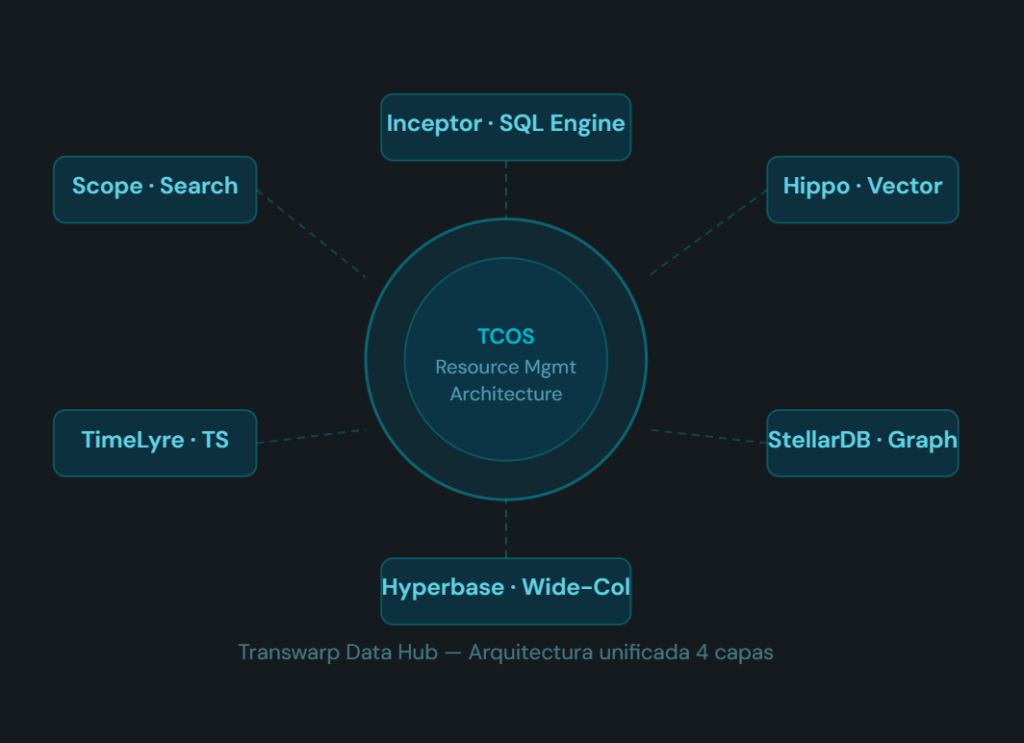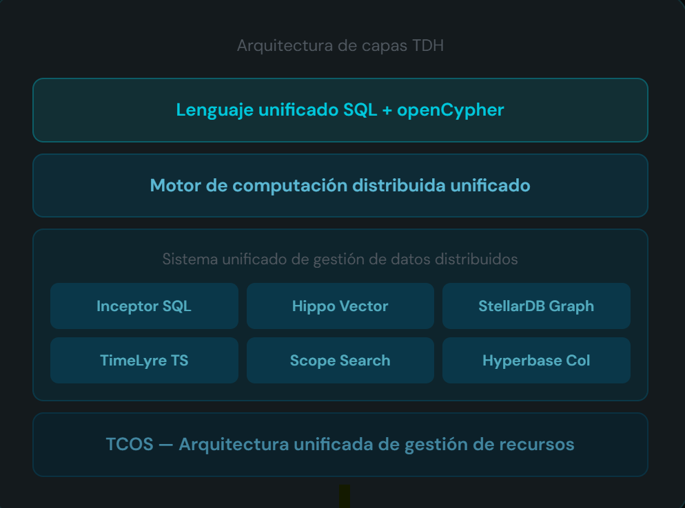 La plataforma Big Data multimodelo más completa del mercado. Soporta 10+ modelos de datos (relacional, vectorial, gráfico, series temporales, geoespacial…) en una sola arquitectura de 4 capas unificadas.